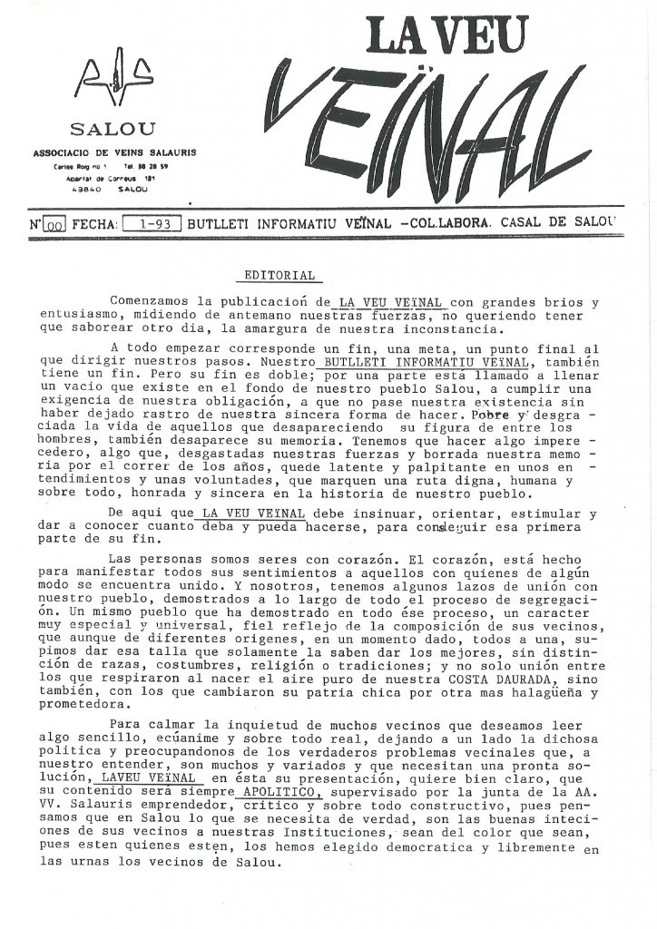 - Aquest lloc web té caràcter informatiu i divulgatiu. El seu objectiu és facilitar l’accés a l’arxiu digital de les diferents revistes locals, editades originalment a Salou i que actualment ja no es publiquen. El Centre d’Estudis Salouencs actua sense ànim de lucre i únicament amb finalitats culturals i de conservació del patrimoni.